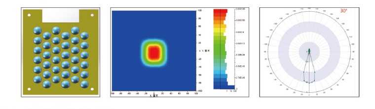 Optical simulation of LED module matching spherical collimating lens (light Angle 30°)